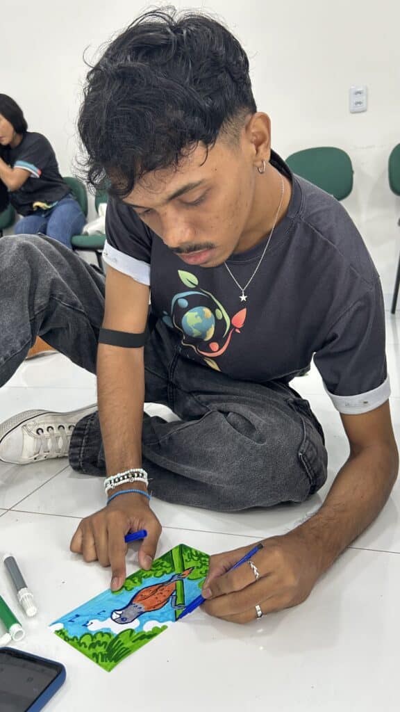 No primeiro dia, as atividades aconteceram no Centro de Educação Ambiental (CEA SEMAR), com rodas de conversa sobre os impactos ambientais no território piauiense e a importância de a juventude estar à frente sobre o debate climático. Compartilhamos ideias, vivências e analisamos juntos, a partir do olhar das juventudes, as problemáticas ambientais dentro dos territórios. Dentro das pautas, falamos sobre a falta de infraestrutura, poluição nas ruas e espaços públicos, saneamento básico que não chega para todes, menos árvores nas cidades, rios poluídos e descarte incorreto de lixo. Mas também puxamos soluções: mobilizações coletivas, mutirões de limpeza, campanhas de comunicação com cultura, música e educação ambiental nas escolas e nos territórios.