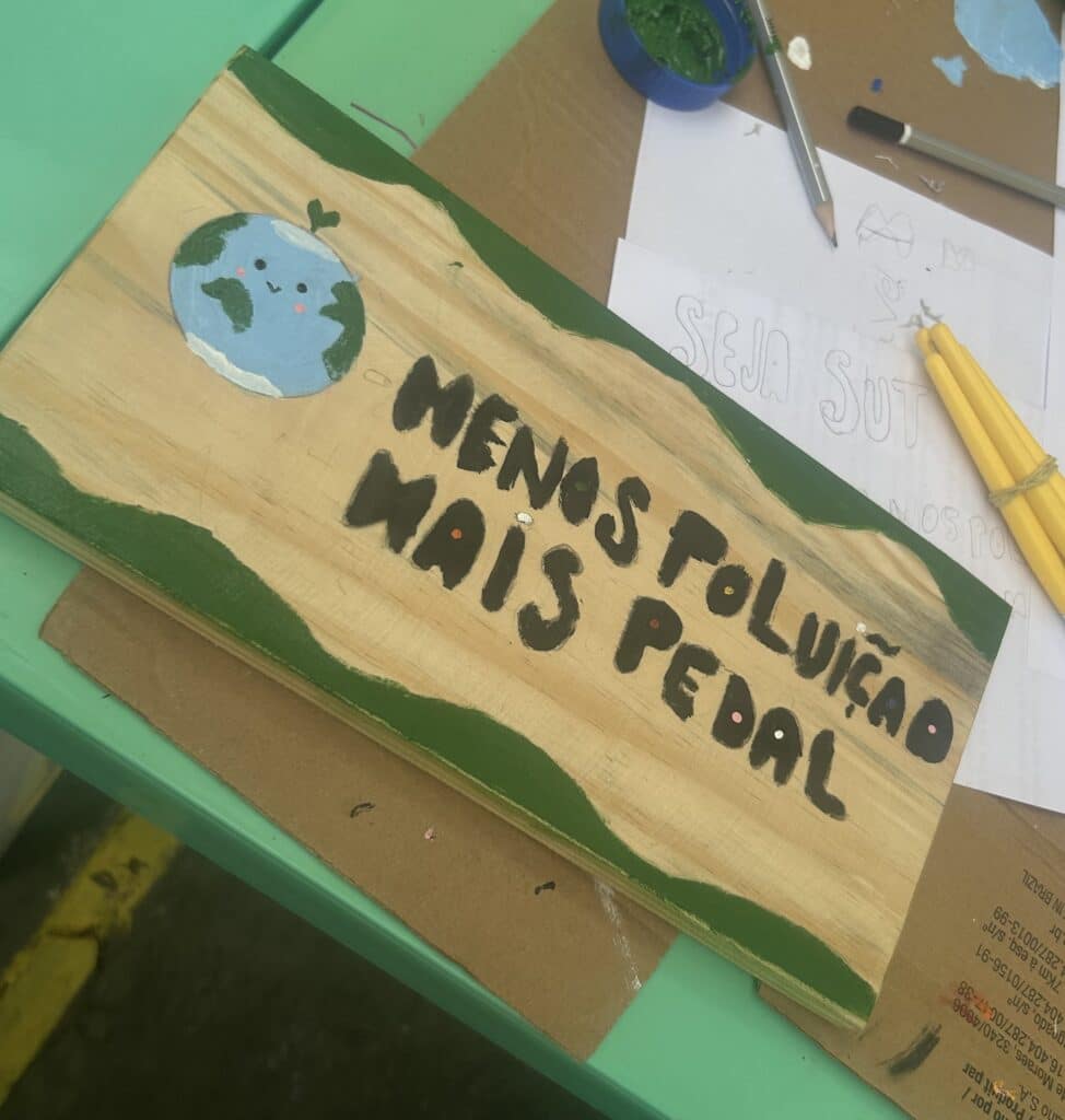 Durante a atividade, os alunos mostraram foco e entusiasmo. Com tinta, papelão, ferramentas e madeira reutilizada, criaram placas com mensagens sobre o direito à cidade, ao transporte seguro e à preservação ambiental. A bicicleta aparece, nesse contexto, como alternativa real e política frente a um modelo de mobilidade urbana que privilegia os carros.