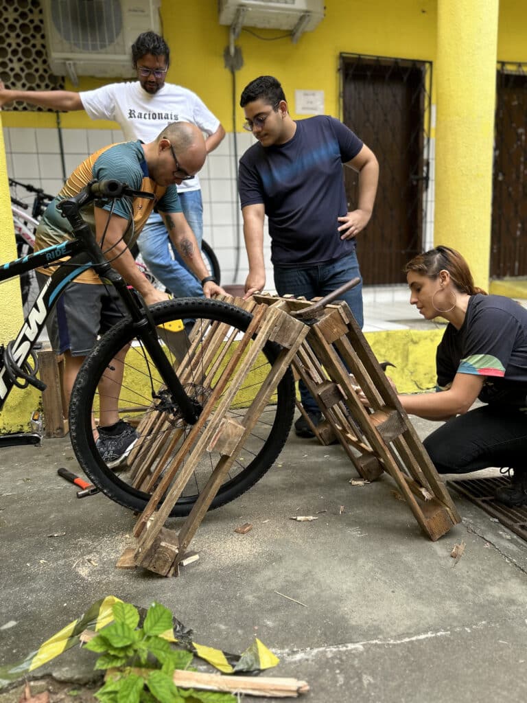 A atividade veio como uma solução prática para um problema do cotidiano escolar — o acúmulo de bicicletas sem local adequado para estacionamento — , os próprios estudantes identificaram essa necessidade do bicicletário, e a partir daí, construíram de forma coletiva a proposta, articulando sustentabilidade, criatividade e crítica social.